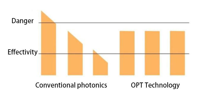 OPT es una onda cuadrada uniforme, que puede controlar eficazmente todo el proceso de tratamiento.